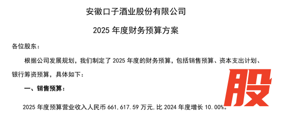 图片来源:口子窖2025年度财务预算方案截图